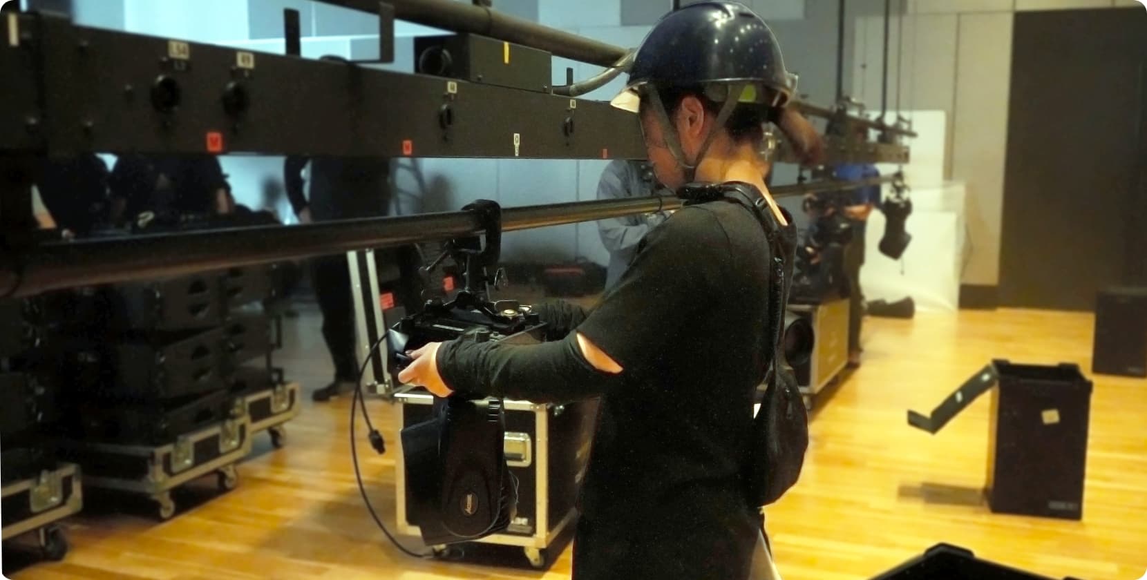 照明機材を搬入し、灯具を吊り込むための準備をします。